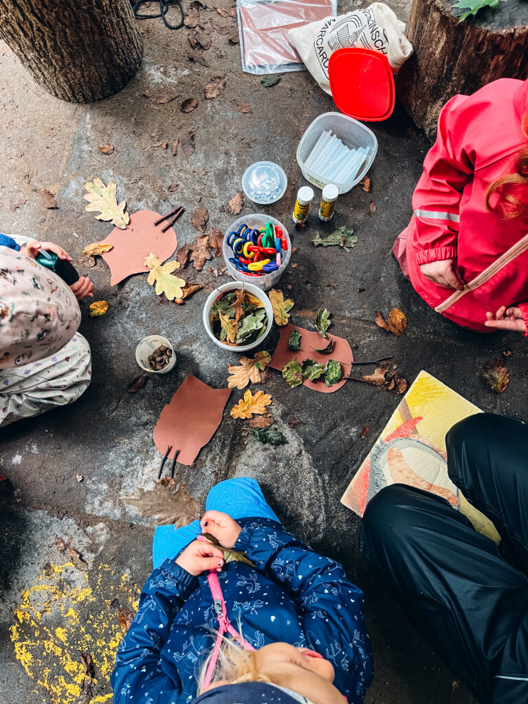 Passend zur näher rückenden Dunkelheit ist natürlich die Eule. Die begleitet uns ja nun schon eine Weile und wir haben nun fünfzehn Eulen Spezialisten. Wir haben uns die Eule angesehen und erfühlt, wir haben sie gezeichnet, ausgemalt, mit Worten beschrieben, ihre Stärken gespielt, mit Waldmaterialien gelegt, Geschichten gelesen, aus Holz gebaut, aus Pappe gebastelt. Nun bereiten wir unsere Laternen vor und natürlich werden Eulen die Nacht erleuchten.