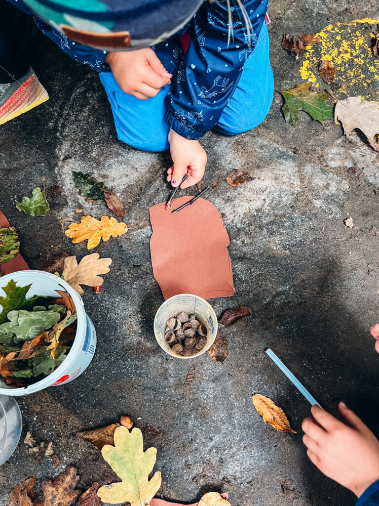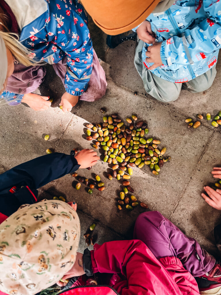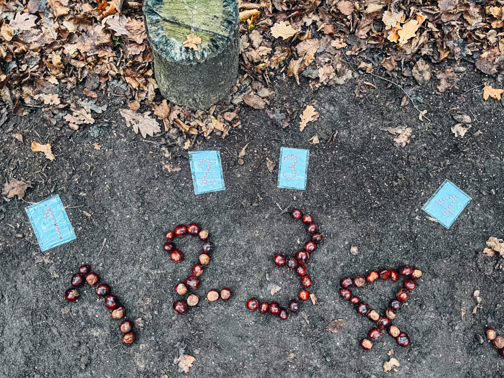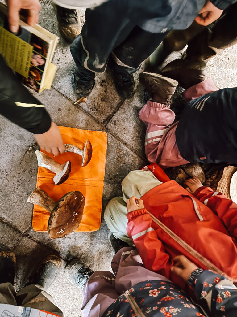 Passend zu der Fülle der Zeit haben wir gesammelte Schätze sortiert und gezählt. Wie viele Eicheln haben wir? Welche Farben finden wir im Wald? Wie unterscheiden sich die Blätter? Was für Bäume umgeben uns? Was ist größer oder kleiner? Was ist rund oder eckig? Was ist lang oder kurz? Wie unterscheiden sich Pilze? Usw.