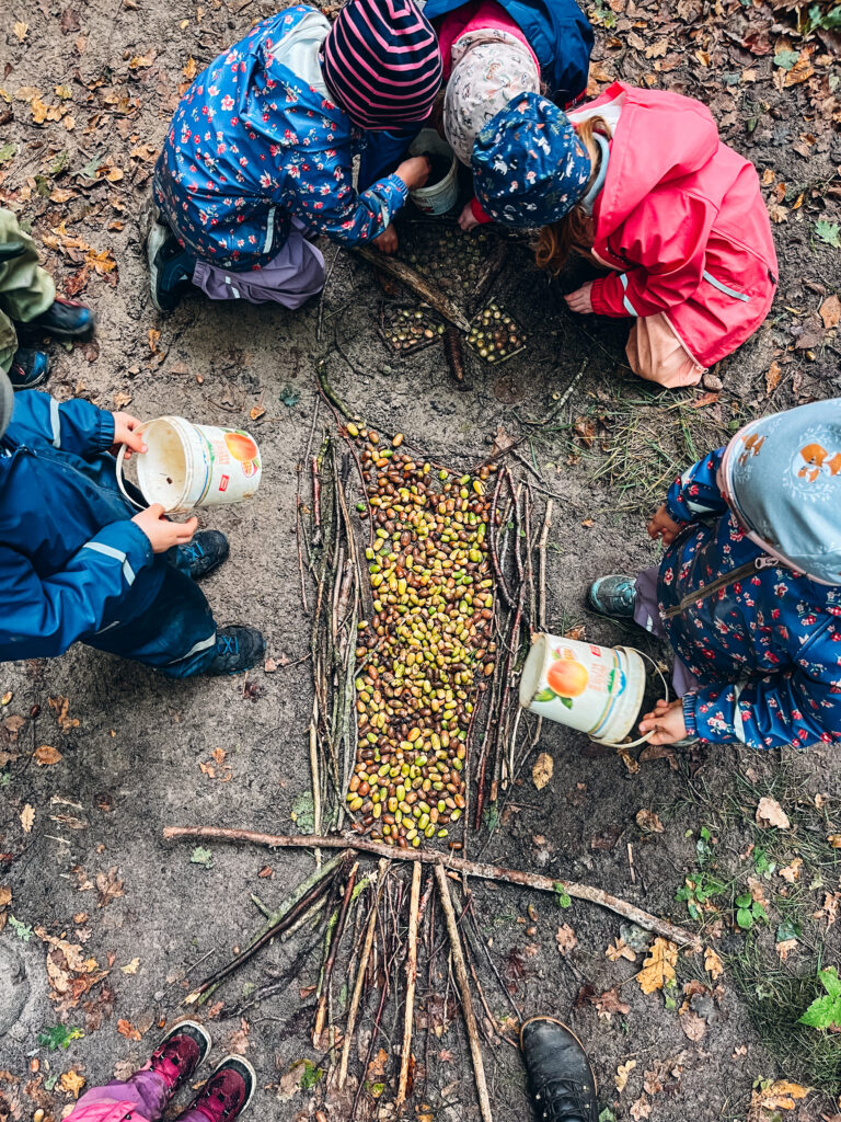 Was im Frühling noch ein Korn war, liegt uns nun als Nuss, Frucht oder Samenkorn zu Füssen. Bei unseren täglichen Touren füllen wir die Sammelbeutel mit Schätzen des Waldes. Pilze, bunte Blätter, Bucheckern, Nüsse, Eicheln, Zapfen. Auch konnten wir dieses Jahr wieder eine Kiste voll mit Äpfeln sammeln und genießen dann zusammen unseren, daraus gewonnenen Apfelsaft.