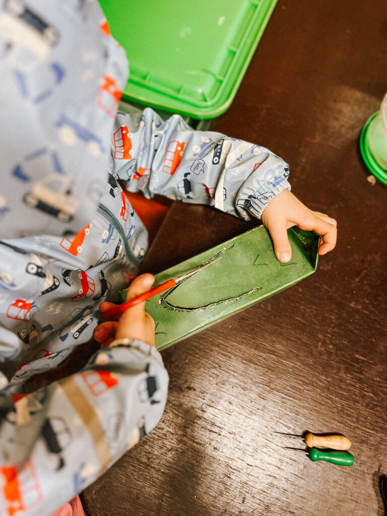 Wir fühlen noch die letzte Kraft des Sommers, es gibt noch warme, goldene Tage, an denen wir uns ganz unseren Schätzen widmen können. Auch die Tierwelt macht auf sich aufmerksam. Wir entdecken viele Krabbeltiere und bauen ihnen Häuser, wir lauschen den Zugvögeln und verfolgen wohin sie fliegen.